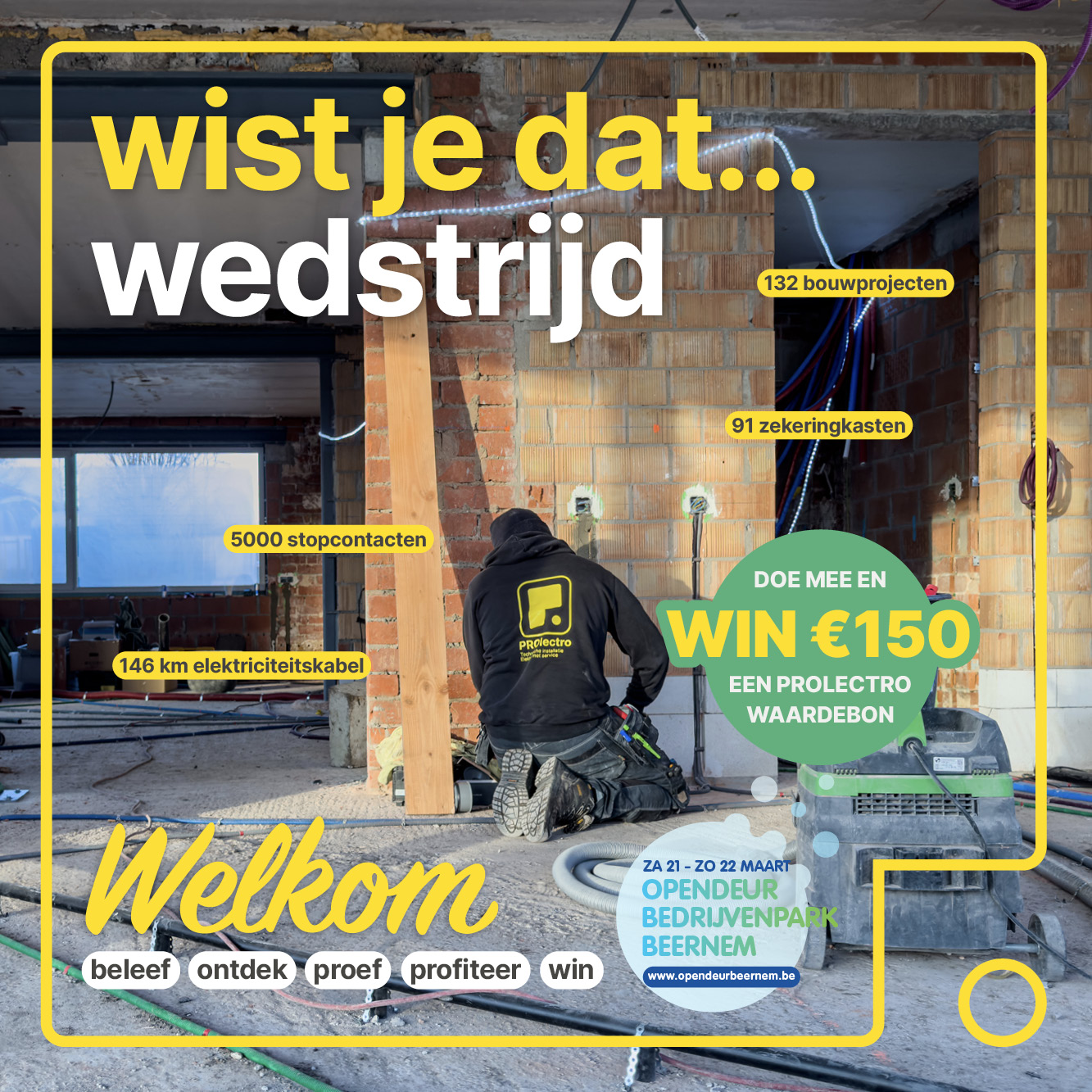 Heb je goed gelezen? Dan maak je kans op een PROlectro waardebon van €150 vrij te besteden aan elektro én technieken te vinden in onze winkels.