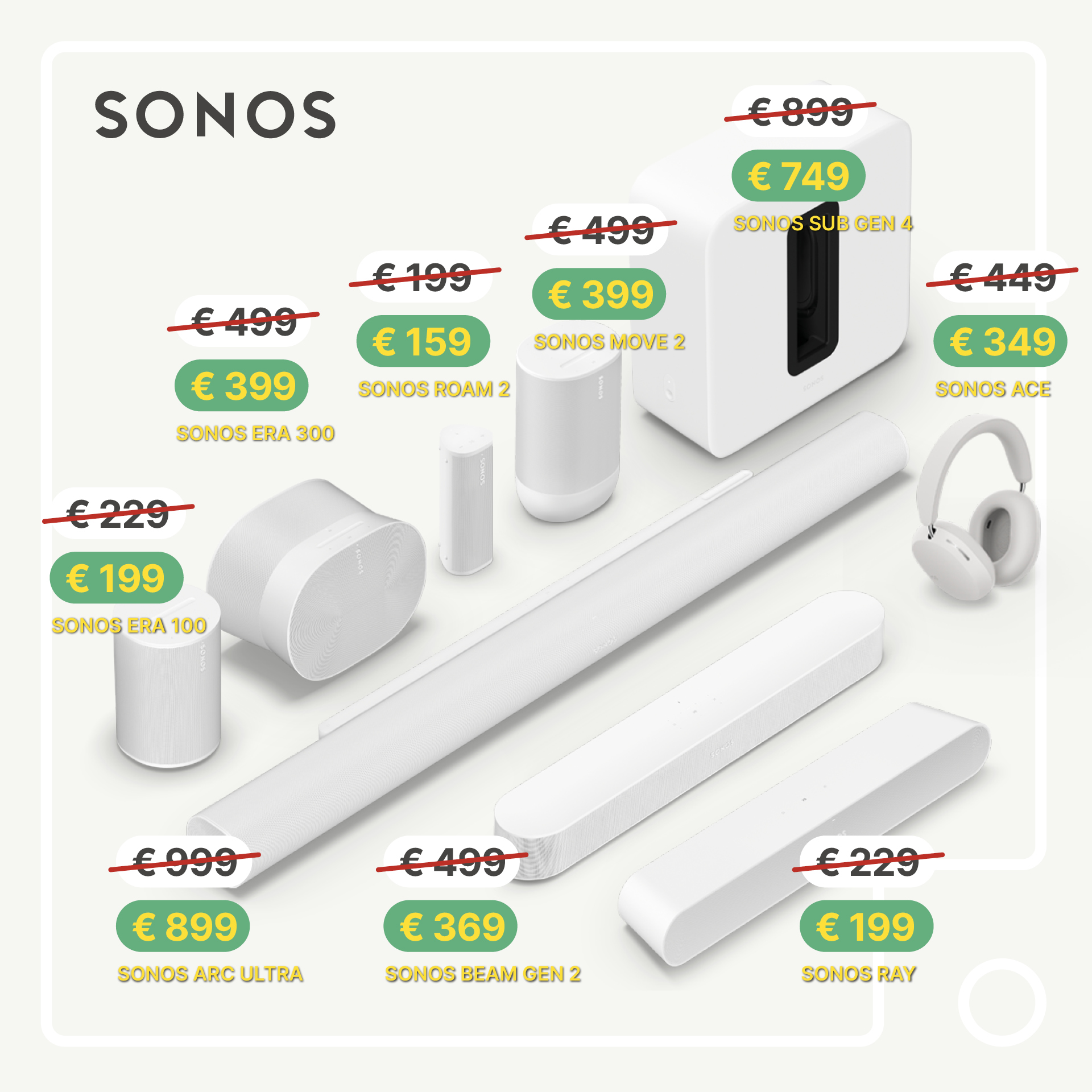 - Sonos Ace: €349 ipv €449 = €100 korting