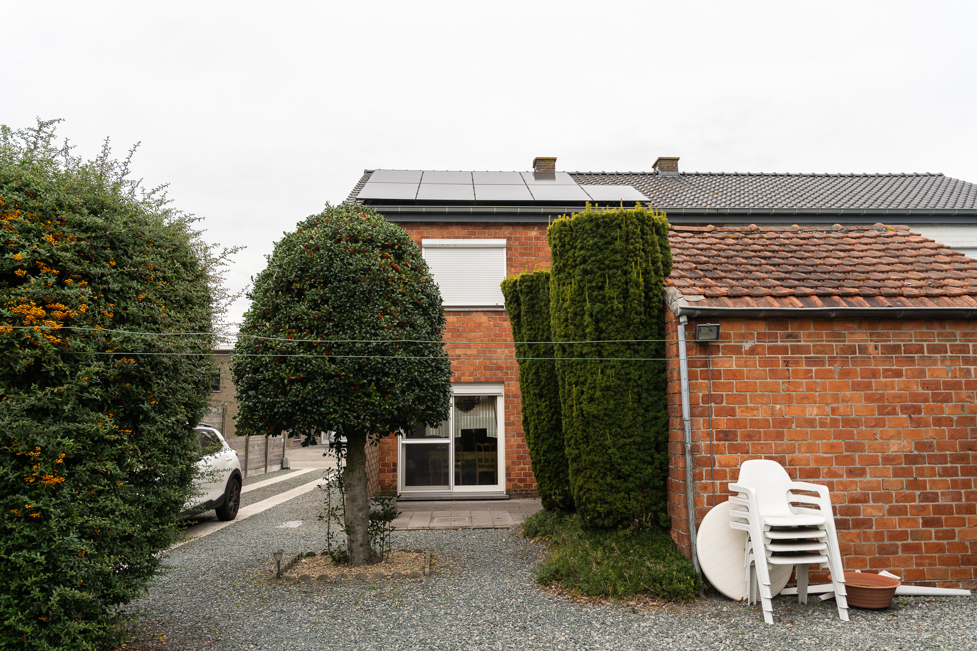 De twee bestaande toestellen van elk 4Kw werden vervangen door twee lage SN200 Elkatherm toestellen van 2Kw. Er werden ook 9 zonnepanelen van 430Wp geïnstalleerd met een Goodwe omvormer om te voorzien in eigen productie en de afname van het net te beperken.